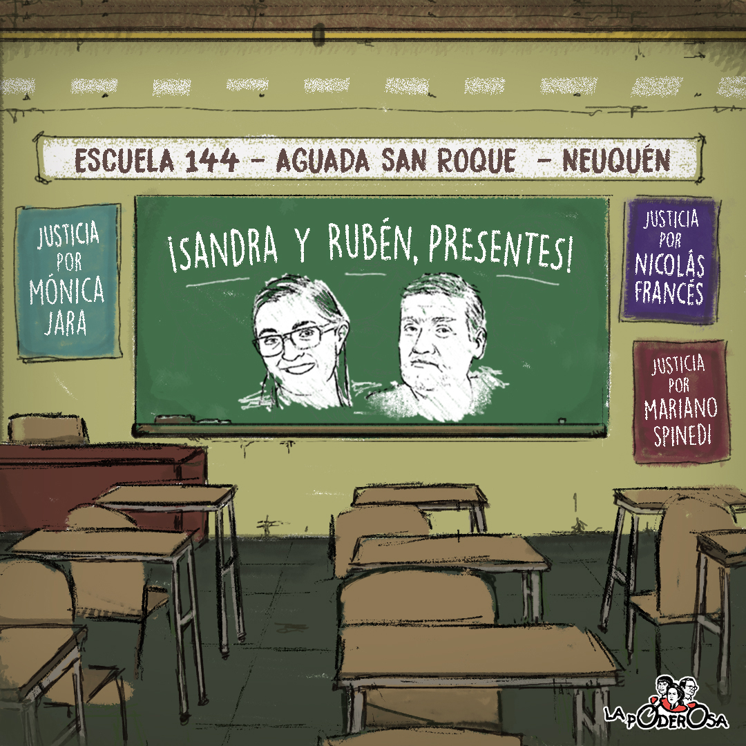 En cada esquina del aula está Sandra Calamano, preparando todo para el inicio de clases, y ahí nomás, cerca de ella, está Mónica Jara borrando el pizarrón. En cada puerta está Rubén Rodríguez, viendo entrar a las y los estudiantes; también se asoman Nicolás Francés y Mariano Spinedi, que andan arreglando los problemas edilicios de los cuales el Estado no se hace cargo. Siguen ahí, porque todavía falta mucho por arreglar en la Provincia de Buenos Aires, donde hace tres años ocurrió la explosión; y tanto más falta sanar en Neuquén, donde el fuego de la desidia se replicó en la infraestructura escolar.