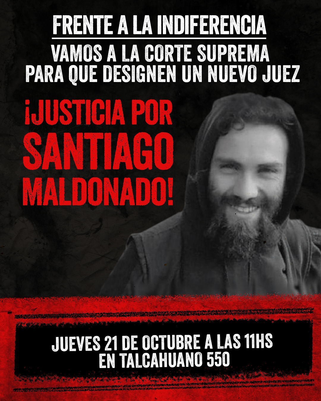 Junto a Sergio y su familia, hoy alzamos la voz para que se designe un nuevo juez en la causa de Santiago Maldonado y se tenga en cuenta la figura de desaparición forzada, de una vez por todas. Porque exigimos saber la verdad, nos encontramos a las 11hs en Tribunales en un reclamo unificado:
