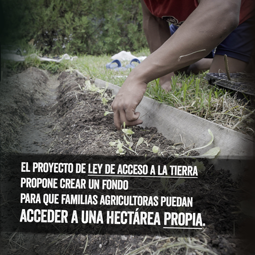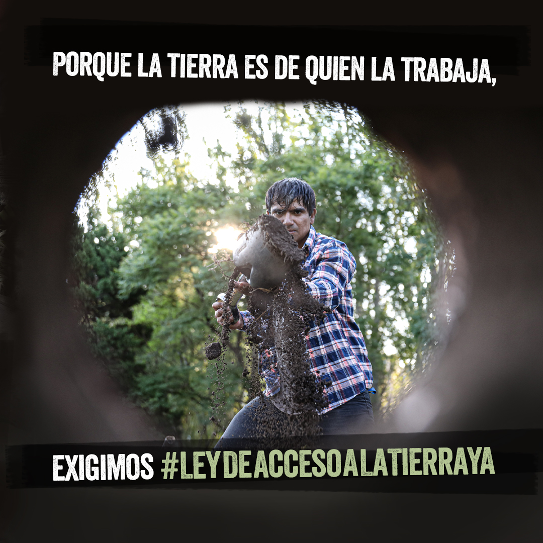 Para enfrentar este modelo de hiperconcentración, que viene de la mano de la especulación de precios, la contaminación y el trabajo informal o esclavo, la Ley de Acceso a la Tierra propone la creación de un fondo que, a través de un sistema de créditos blandos, permite acceder al terreno propio, garantizando así la producción sana de alimentos y una vivienda digna para las trabajadoras y los trabajadores rurales. El proyecto fue presentado por tercera vez, y el presidente Alberto Fernández se comprometió en febrero a contribuir para que la ley avance; sin embargo, desde mayo, las comisiones de Agricultura y Asuntos Legislativos de la Cámara de Diputados de la Nación no logran llegar a un dictamen para que el proyecto sea discutido en el recinto, y el reclamo está vigente, aún sin tratar.