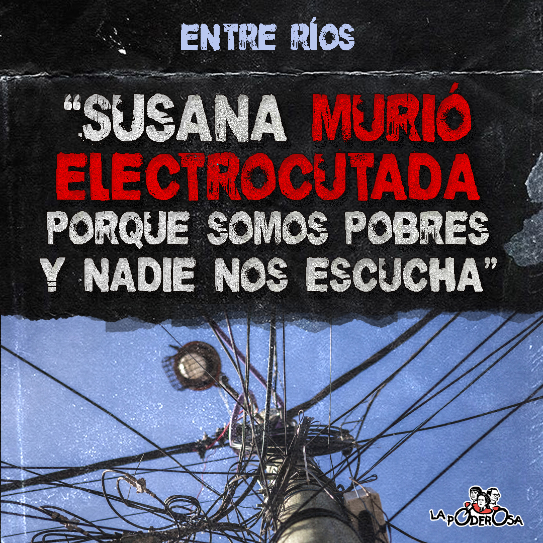 “Hoy por la mañana, Susana Giles, vecina de 61 años y trabajadora de un comedor del barrio, Gaucho Rivero, en Paraná, murió electrocutada a causa de un caño que no para de filtrar agua. Susana apoyó una escalera en el frente de su hogar para cortar una enredadera, pero justo detrás de esa pared está el pilar de luz por donde entra el agua a su casa. En ese pilar había un cable con corriente que, al encontrarse con el agua, produjo un golpe fatal para nuestra vecina. Nos enteramos por los gritos desesperados de sus nietos, pero ya era tarde. La hija de Susana se le había tirado encima para salvarla, pero quedaron las dos electrocutadas y, para frenar la situación, un vecino se subió bien alto al pilar con una pinza y arrancó el cable. Al ver a su mamá en peligro, uno de los chicos quiso ayudarla y terminó con corriente en el pecho, y otro, que quiso correrla con el pie, terminó con una pierna quemada.
