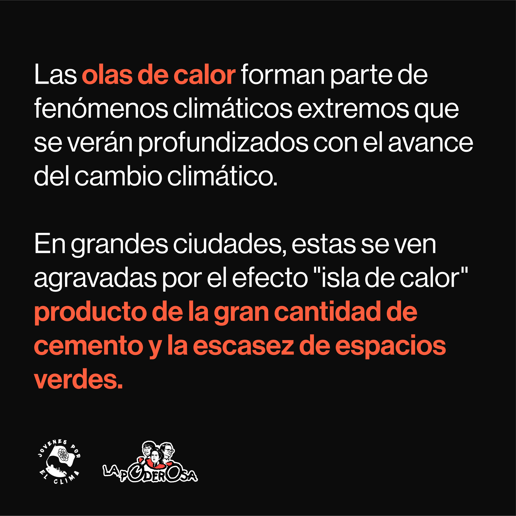 Las olas de calor forman parte de fenómenos climáticos extremos que se verán profundizados con el avance del cambio climático. En grandes ciudades, estas se ven agravadas por el efecto «isla de calor» producto de la gran cantidad de cemento y la escasez de espacios verdes.