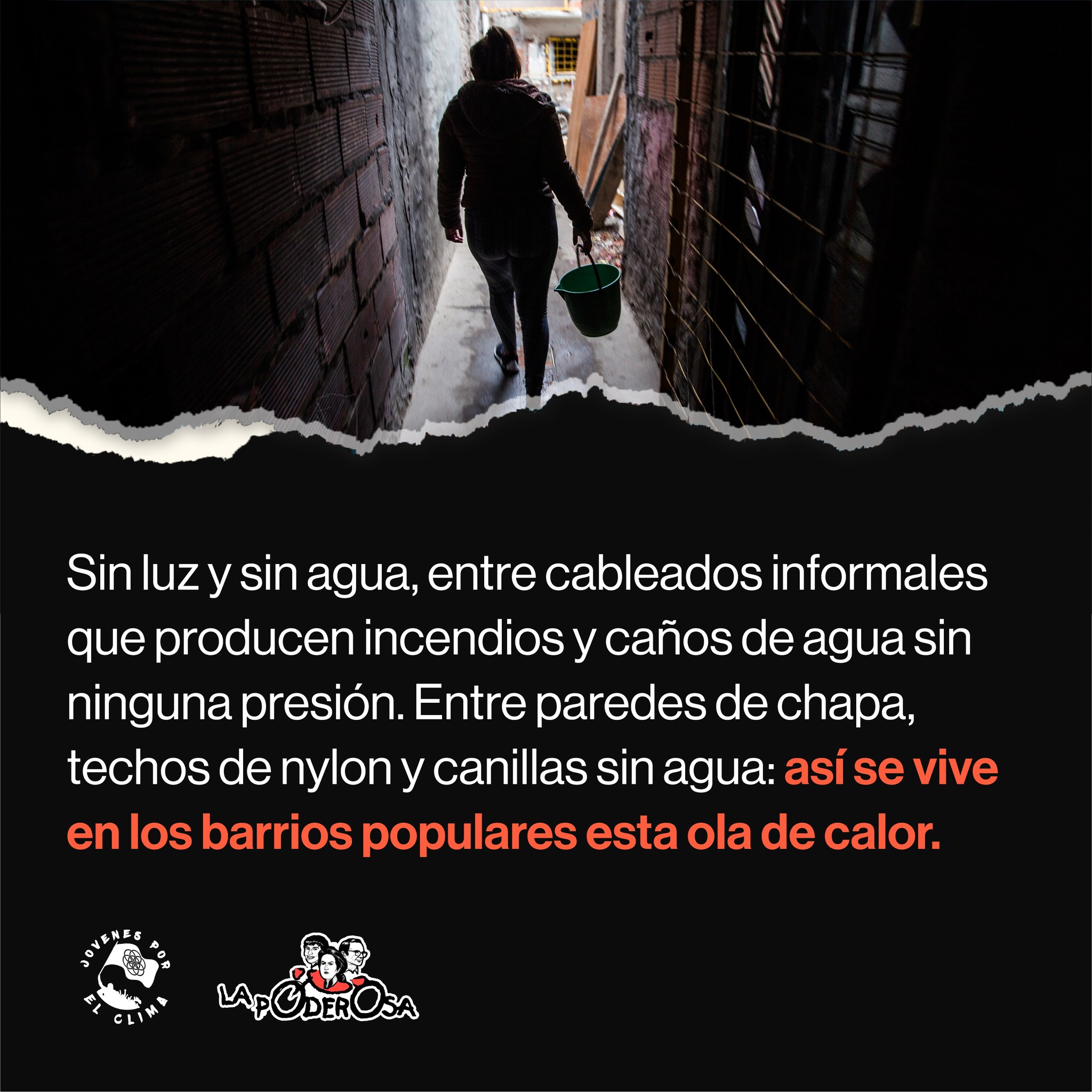 Sin luz y sin agua, entre cableados informales que producen incendios y caños de agua sin ninguna presión. Entre paredes de chapa, techos de nylon y canillas sin agua: así se vive en nuestros barrios populares esta ola de calor.