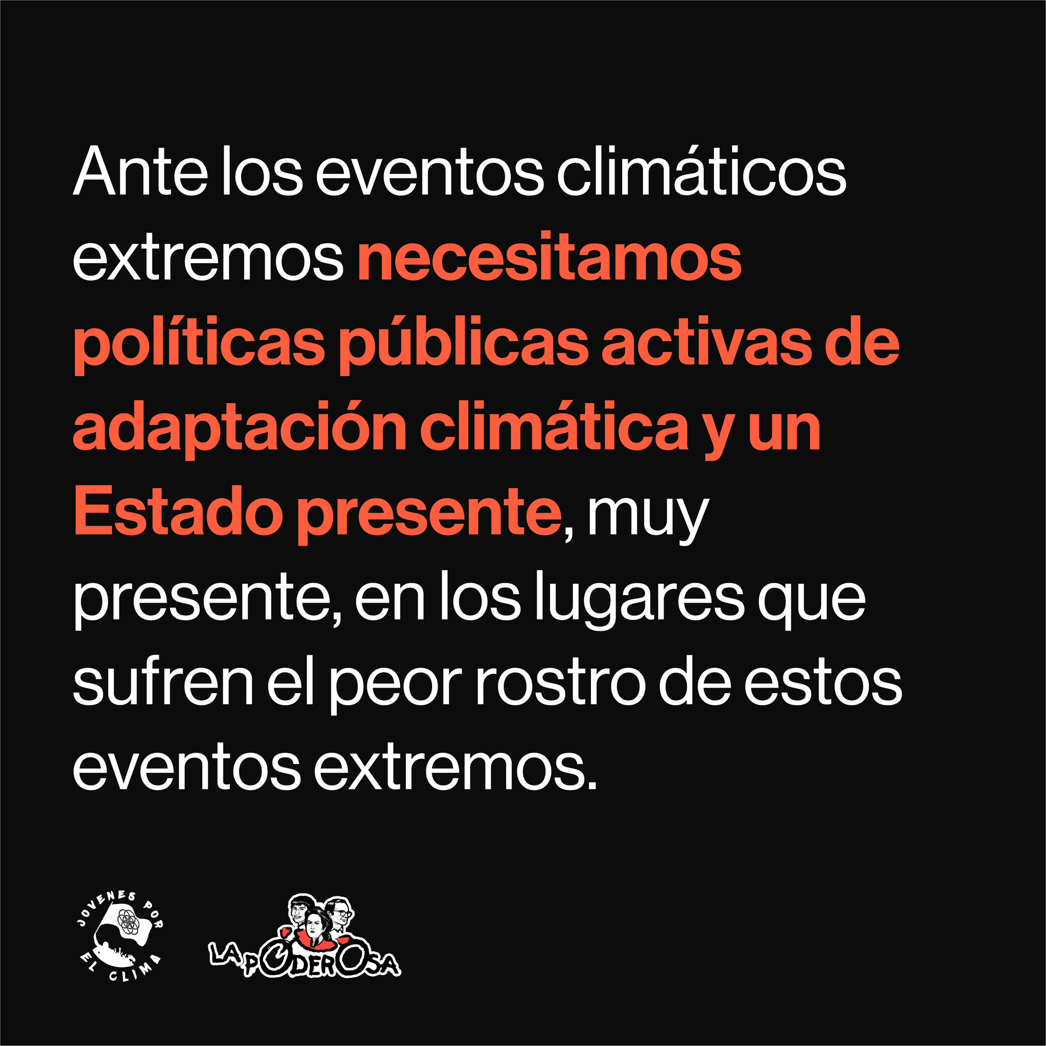 Ante los eventos climáticos extremos necesitamos políticas públicas activas de adaptación climática y un Estado presente, muy presente, en los lugares que sufren el peor rostro de estos eventos extremos.