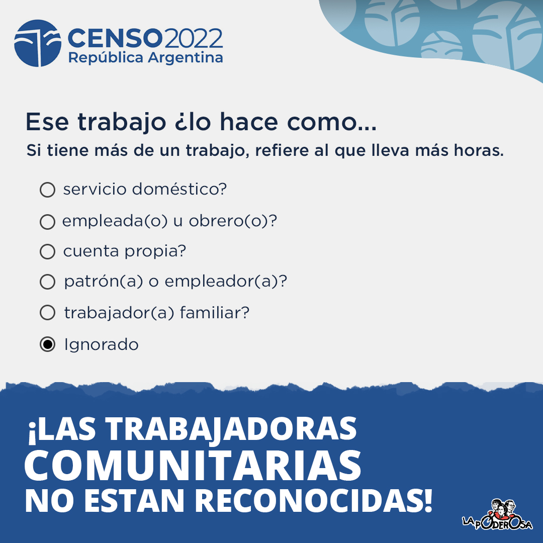 Leyendo las preguntas del Censo 2022, nos preguntamos: ¿dónde está la opción «trabajadoras comunitarias»?
