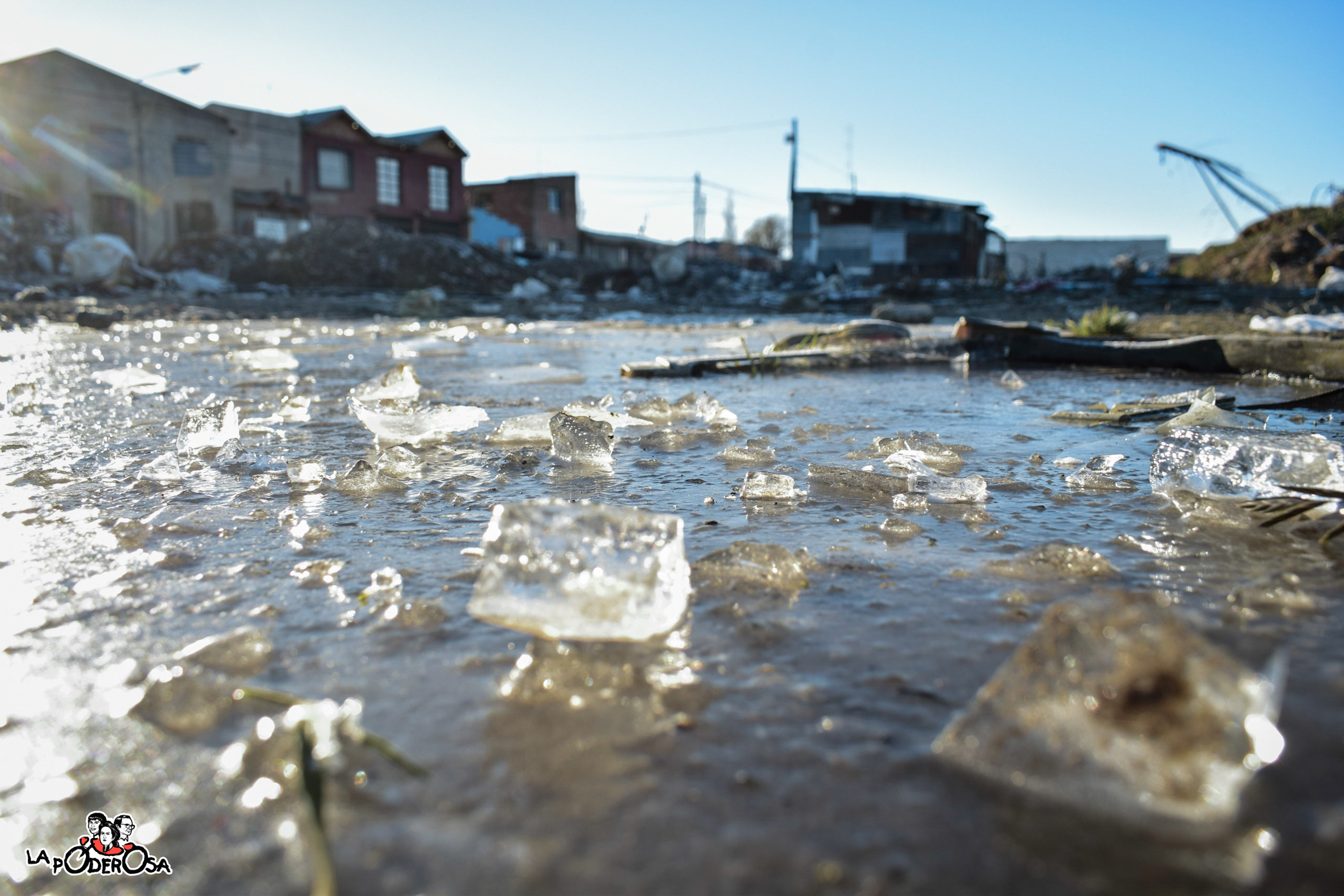 6:30 de la mañana, -7º en Barrio Madres a la Lucha, Río Gallegos. Somos cerca de 500 familias, asentadas hace 14 años, sin red formal de electricidad, agua, cloacas y gas. El invierno expone aún más las desigualdades: el año pasado se quemaron 3 casas y nuestro centro comunitario.