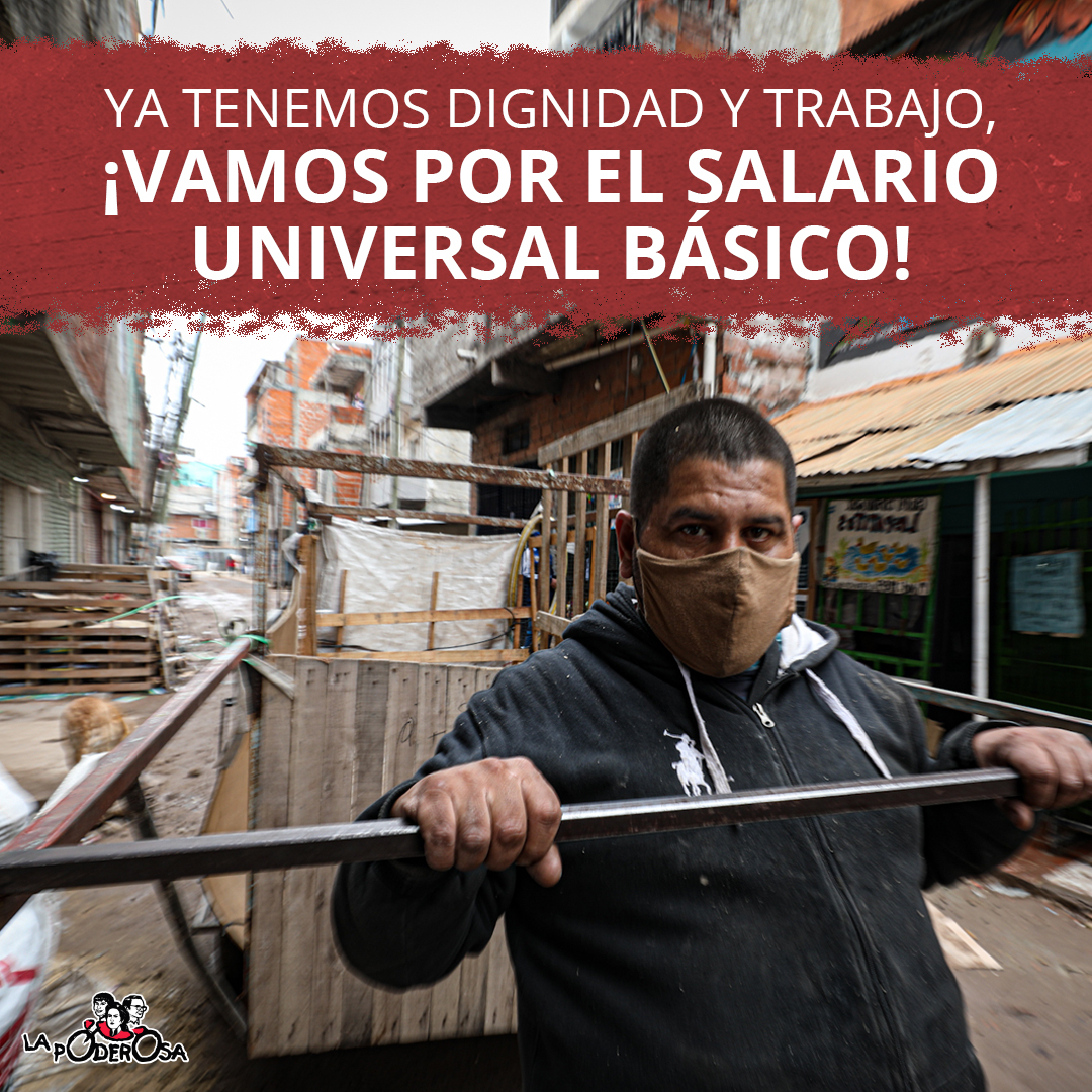 El Salario Básico Universal es una garantía real para que ningún trabajador de la economía popular quede por debajo de la línea de la indigencia: desde las cocineras en los comedores hasta la venta ambulante, desde las promotoras que acompañan casos de violencia de género, hasta los cartoneros. Ni siquiera el 5% de la población de nuestros barrios tiene un trabajo formal con todos los derechos garantizados.