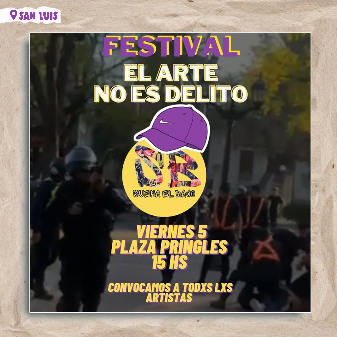 El domingo pasado, la Policía provincial de San Luis reprimió una competencia de freestyle que estaba por comenzar en la Plaza Pringles y se llevó detenidas a 9 personas a la Comisaría Nº 1, la mayoría menores de edad. Por eso hoy, a partir de las 15hs, desde la misma plaza se realizará un festival en repudio a la represión vivida.